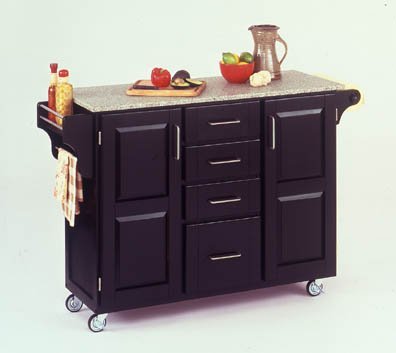 Finish:Black, Top Finish:Black/White, Top Material:Granite Hardware Included Twocabinet doors with adjustable shelf inside Utility drawer Built in spice rack with towel holder on one side Stainless steel towel holder on the other side Heavy duty locking rubber casters