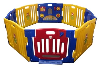 This play-pen features a picture house, ball spinners, play telephone, and a swinging hinged door with safety lock. The size of this playpen can increase or decrease by removing or adding panels. It also may create interest and encourage mobility for your child. Makes a great holiday gift.FEATURES: Good quality; Perfect for children up to 4 yrs of age; 8 Panels; Activity board: picture house, play phone; Swinging hinged doors, and safety lock on doors; Assembled dimensions: 73'' in diameter, panels: 31" W x 23.5" H