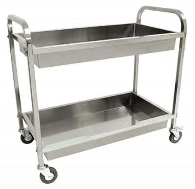 If you often host large parties, this serving cart by Bayou Classic will allow you to easily and efficiently serve your guests without the hassle of having to carry things around. There are two large trays on the cart so you will be able to quickly move and serve the meal. Since it is made out of stainless steel, you have both a tough and attractive looking cart. Also, the wheels and handles are durably made so that you can use this party after party. Provides a simple and convenient way to serve guests. Features two large storage trays. Sturdy wheels and handles. Durable and attractive stainless steel construction. Dimensions:. Height: 30". Serving Trays: 35" L x 19.5" W x 4" D.