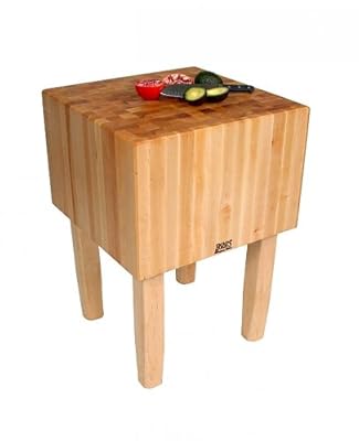 AA02 Size: 24" x 24", Leg Material: Wood Features: -16'' End grain work surface.-Optional knife holder.-Legs available in wood or stainless steel.-Using only formaldehyde-free and low-emission formaldehyde gluing processes in manufacturing their butcher blocks.-Selecting individual trees for harvest, encouraging forests to renew and regenerate themselves naturally and prolifically.-Maintaining active recycling programs, with 95pct of all raw materials, scrap, and sawdust being recycled as fuel to heat their kilns. Options: -Variety of sizes available. Construction: -Solid hard maple construction. Color/Finish: -Cream finish with beeswax.-Varnique finish on legs and sides. Dimensions: -Stands 34'' H.-24'' W x 18'' D, 216 lbs.-24'' W x 24'' D, 287 lbs.-30'' W x 24'' D, 348 lbs.-30'' W x 30'' D, 386 lbs.-35'' W x 30'' D, 499 lbs.-40'' W x 30'' D, 567 lbs.-50'' W x 30'' D, 705 lbs.-35'' W x 35'' D, 579 lbs.-40'' W x 35'' D, 659 lbs.-50'' W x 35'' D, 819 lbs.-60'' W x 35'' D, 979 lbs. Warranty: -One year warranty against defects in workmanship and material.