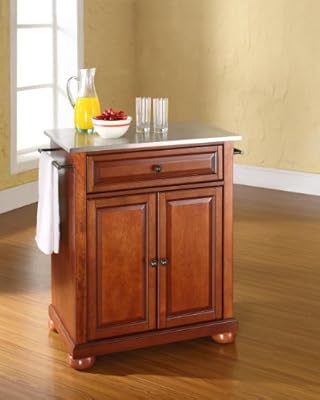 Constructed of solid hardwood and wood veneers, this kitchen island is designed for longevity. The beautiful raised panel doors and drawer front provide the ultimate in style to dress up your kitchen. The deep drawer are great for anything from utensils to storage containers. Behind the two doors, you will find an adjustable shelf and an abundance of storage space for things that you prefer to be out of sight. Style, function, and quality make this kitchen island a wise addition to your home.